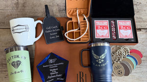 Due to the vast number of award and gift choices, we typically do not keep these items in stock. However, we can work with you to select a specific award or gift and design your own personalized engraving.